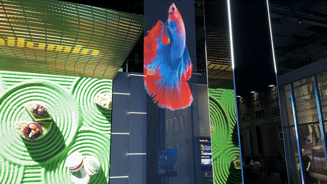 核能上,Udesign SV 全息通明屏是实正的低温冷屏,贴合玻璃幕墙,不消担忧冷热膨缩对布局平安的影响;其具有7000nits高亮,正在90%以上高透下,仍然能供给色彩明艳、对比明显的立体全新影像,确保画质显示正在优良照明前提和透光率下的超卓沉浸感。