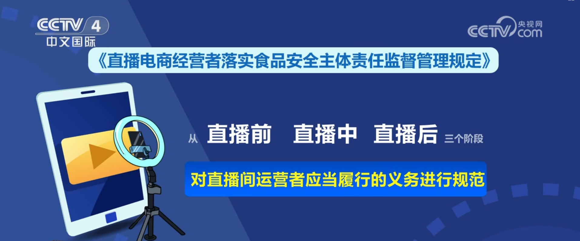即将发布的《曲播电商落实食物平安从体义务监视办理》将明白曲播电商各相关从体的食物平安义务,规范运营行为、更好防备食物曲播勾当中的食物平安风险。